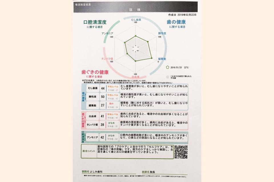 唾液をチェックすることで、ご自身のお口の状態を把握でき今後のデンタルケアにも役立てることができます。