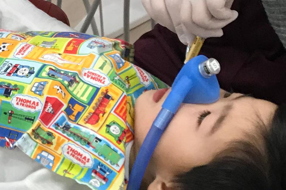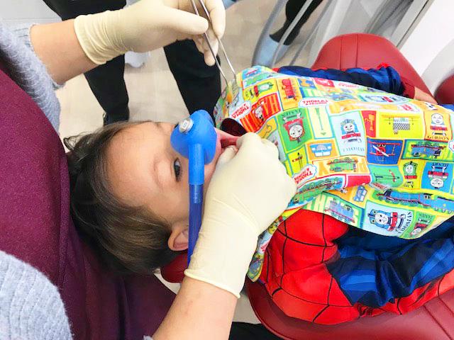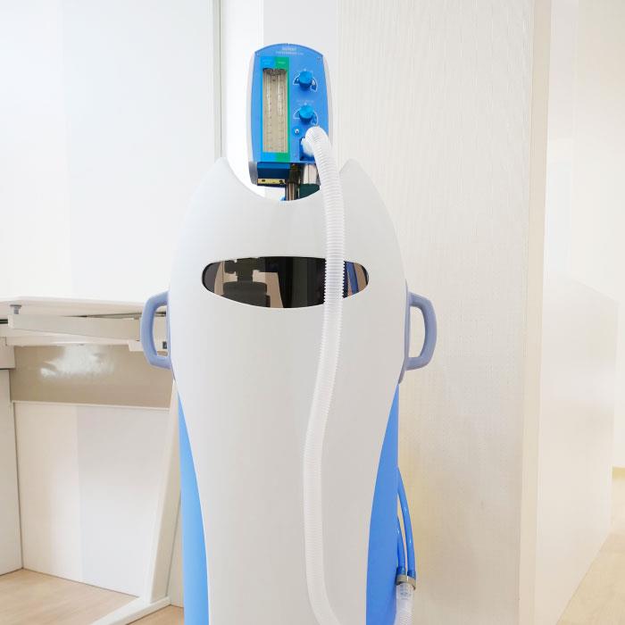 酸素にほんのり甘い香りのする笑気という気体を混ぜて、鼻で呼吸をしながらゆっくりと吸入していきます。吸入中は歯を削る不快な振動や注射の痛みを感じにくくなり、緊張が和らいだリラックスした状態で治療を受けていただけます。